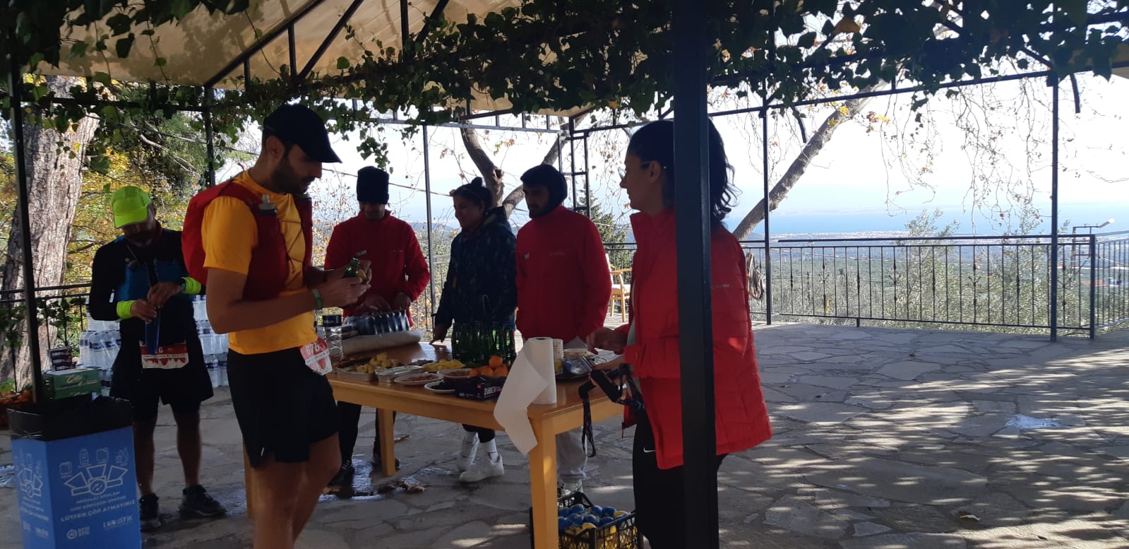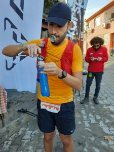 Tırmanışı tamamlayıp, 2. CP olan Doyran’a ulaşmaya yakın, sevgili eşim Fatma, Mehmet Ali Ok ve ailesini karşımda gördüm. Bana sürpriz yapmak için gelmişlerdi. Tırmanıştaki yorgunluk bir anda üzerimdem uçup gitmiş, oldukça mutlu olmuştum. Böyle anlarda, insanın sevdiklerini görmesi, en iyi dopingden daha etkili oluyor. Hızlıca Mehmet Ali Ok ile durum değerlendirmesi yapıp CP’ye doğru devam ettim. Eşim ve Mehmet Ali abi de CP’ye benimle geldiler. Tırmanış oldukça yormuş, orman içindeki nem sebebiyle suyumun neredeyse tamamını bitirmiştim. Hızlıca 2 suyumu doldurup, 1 tanesine Wup Elektrolit karışımını ekledim. Wup elektroliti ilk kez bu sene İstanbul Maratonu için yapmış olduğum uzun antremanlarda deneyimleme şansına erişmiş, yarışta da çok faydasını görmüştüm. Bu yarışta da elektrolit ihtiyacımı bu ürünle ve CP’lerde içtiğim sodalarla gidermeyi hedeflerken, fazla şekerli ürünler yemek yerine daha tuzlu ve midemi rahatlatacak ürünler yemeyi tercih ediyorum. Bu CP’de de küçük bir muz ve kaşar peyniri ile birlikte, 1 şişe soda ve çok az da kola içtim. 30. KM’yi dinç bir şekilde devirmiş, neredeyse yarışı yarılamış durumdaydım. Sevgili eşim Fatma ve Mehmet Ali Ok ile Dedepınar CP’sinde görüşmek üzere anlaşıp yola koyuldum.